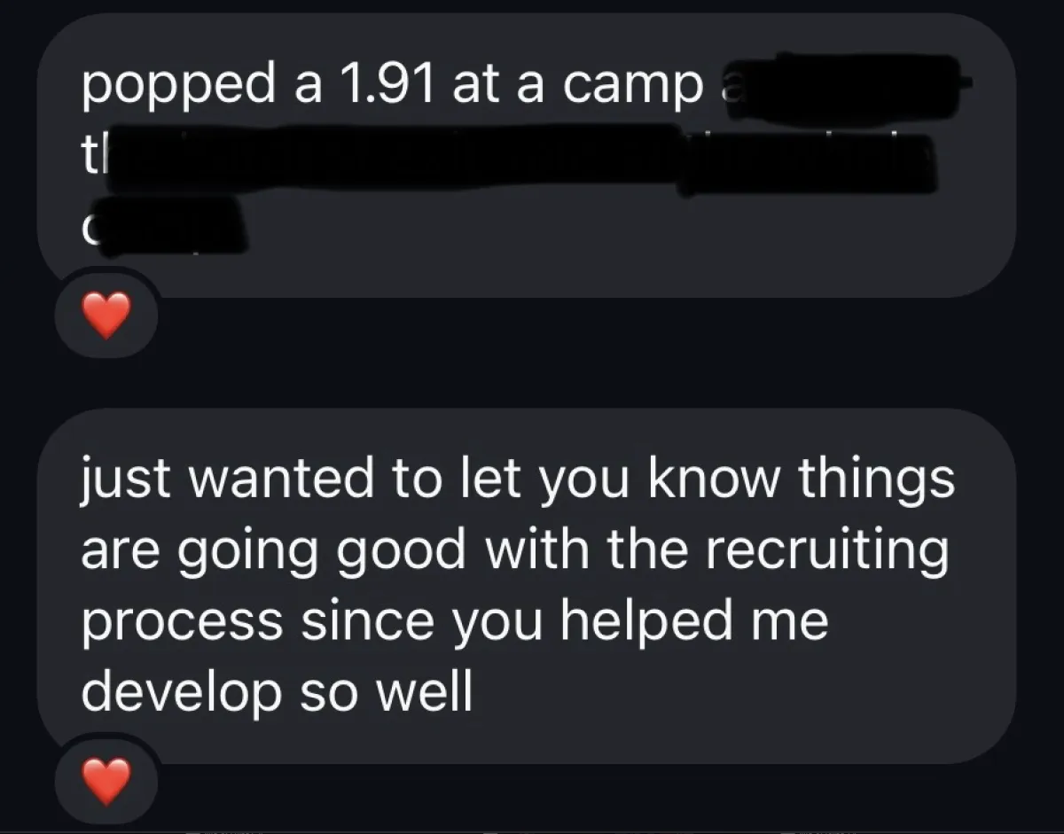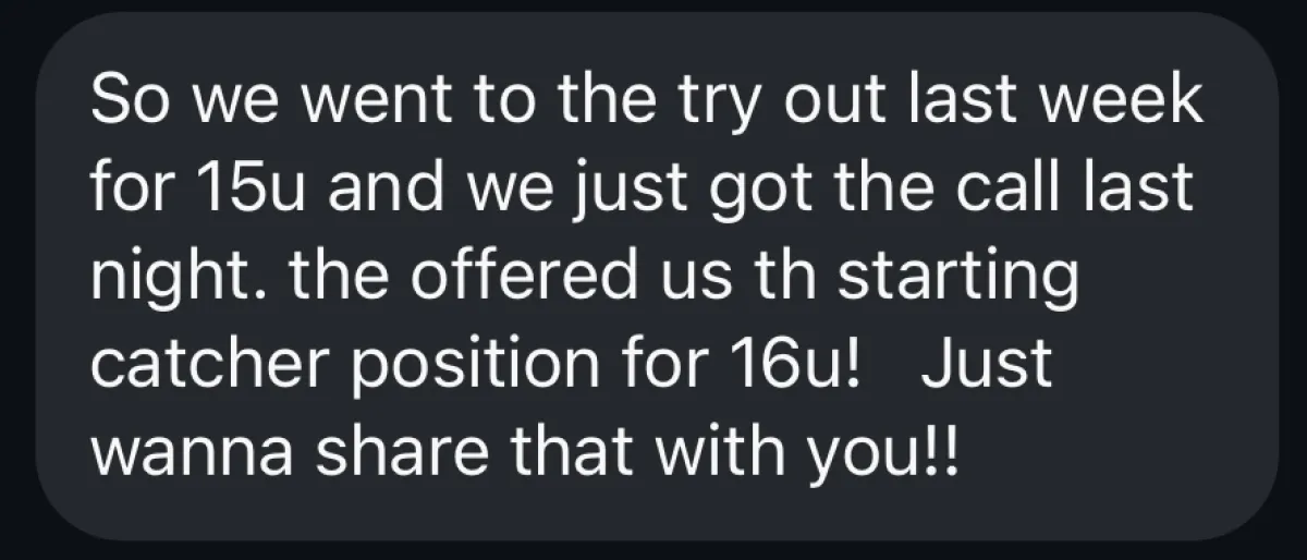 You’ll receive clear standards, coaching, feedback, structure, and accountability — while the athlete learns how to operate like a college catcher before becoming one.
