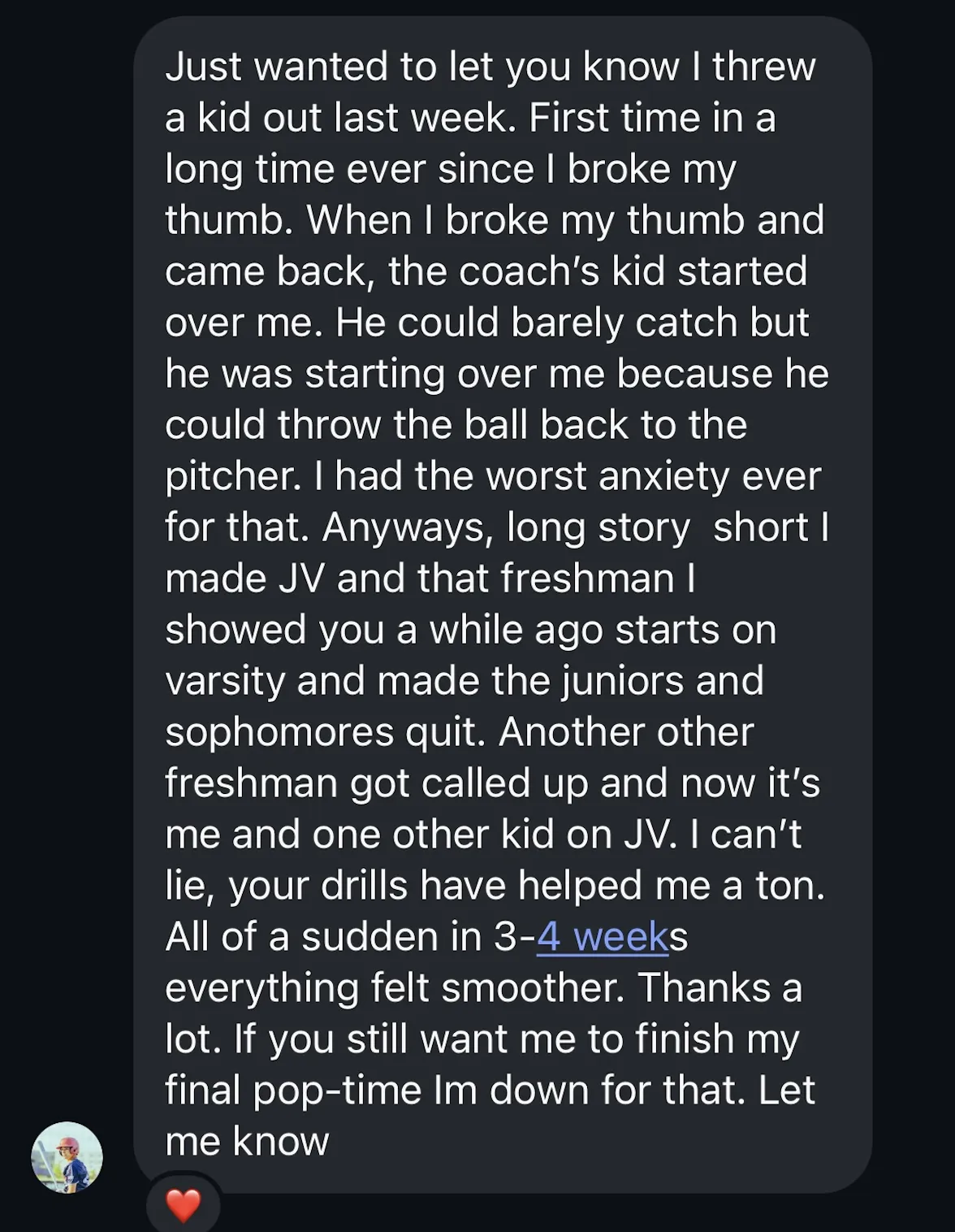 We work with catchers at different stages — but we only move forward with athletes who are willing to do the work required to actually become college-ready.
